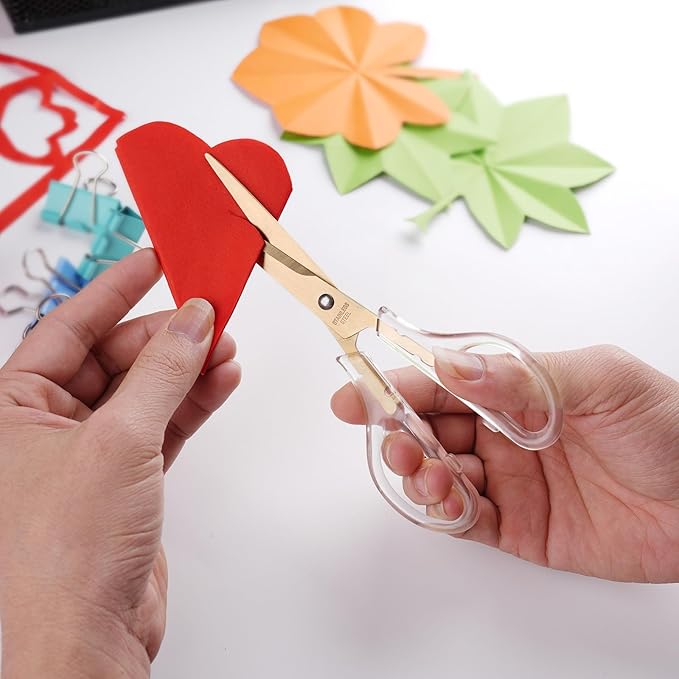 Acrylic Scissors Set, Office Scissors for Desk Gold, Clear Comfort-Grip Handles and Titanium Coated Blades, Sharp Scissors all Purpose Heavy Duty for Sewing, Art, Craft, School, Home Supplies
