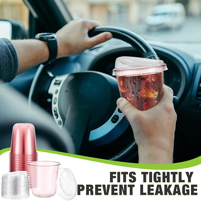 - Crystal and Transparent: the clear plastic cups with lids is made of PET plastic, healthy and non toxic, the transparent material makes the glass cup present the appearance of foam and beverage, bringing you a good use experience, strong and durable, they are a suitable alternative to disposable plastic cups
