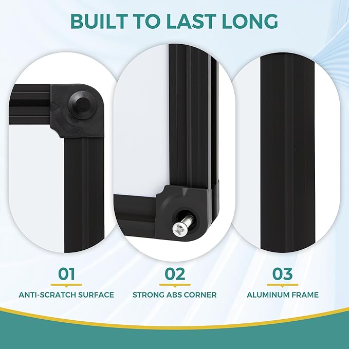 - DURABLE CONSTRUCTION: Sturdy aluminum frame in black with reinforced corners protects the board's edges and extends product life