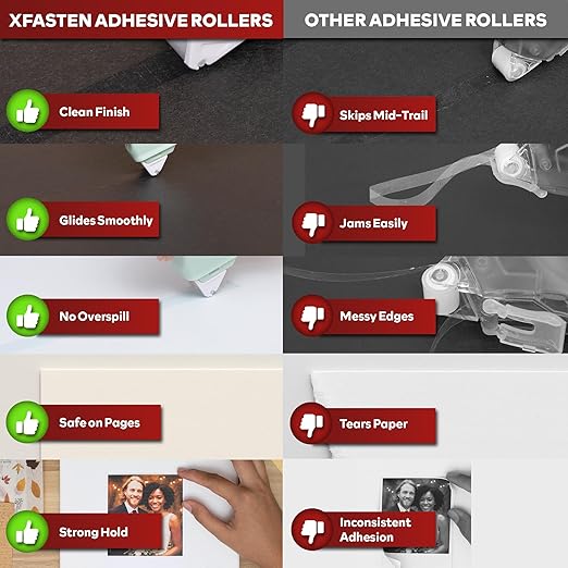 - Mess-Free, Photo-Safe: Acid-free and archival-safe adhesive makes it perfect for photos, cards, and storage in a scrapbook kit. Provides clean, wrinkle-free instant adhesion without stretching inconsistencies or messy glue residue.
