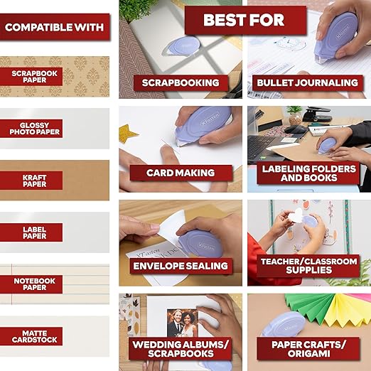 - Back-to-School Craft Essential: This double sided tape dispenser for crafts is ideal for junk journaling, card making, sealing envelopes, gift wrapping, scrapbooking, or general craft supplies for home, school, and office projects.