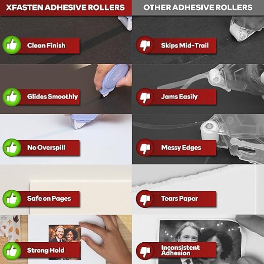 - Mess-Free, Photo-Safe: Acid-free and archival-safe adhesive makes it perfect for photos, cards, and storage in a scrapbook kit. Provides clean, wrinkle-free instant adhesion without stretching inconsistencies or messy glue residue.