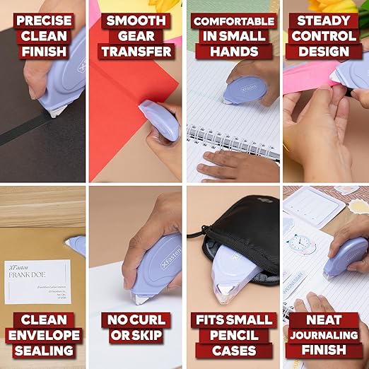 - Jam-Free Rolling: Built with a smooth micro-axle gear design for consistent dispensing, this glue tape glides evenly on straight and curved lines, preventing skips or wasted strips — perfect for scrapbook supplies and junk journal supplies.