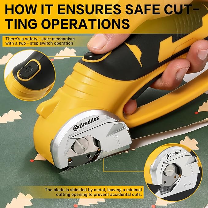 - Versatile and Easy to Use: With simple, intuitive controls, this electric cardboard cutter offers a premium electric rotary cutting tool ideal for craft enthusiasts of all ages and professions.Regular cleaning of the automatic electric box cutter blades after use prevents build-up of debris, ensuring sustained sharpness and uninterrupted cutting performance