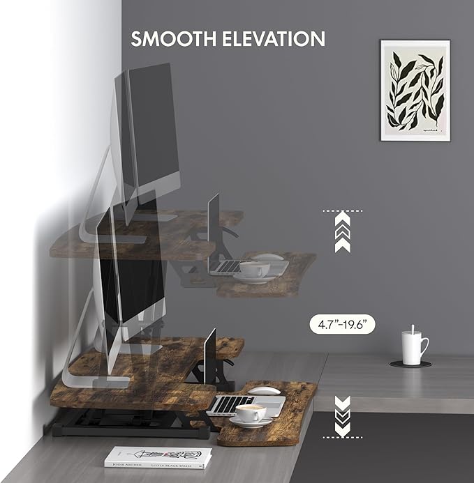 - Adjustable Heights for Your Dynamic Workflow: Adapt to any task with ease. The desk converter provides an adjustable height range of 4.7 to 16.6 inches, allowing you to customize your workspace for sitting and standing positions. Whether tackling focused tasks or embracing a more active workflow, this desk converter supports your dynamic work style for maximum comfort and efficiency.