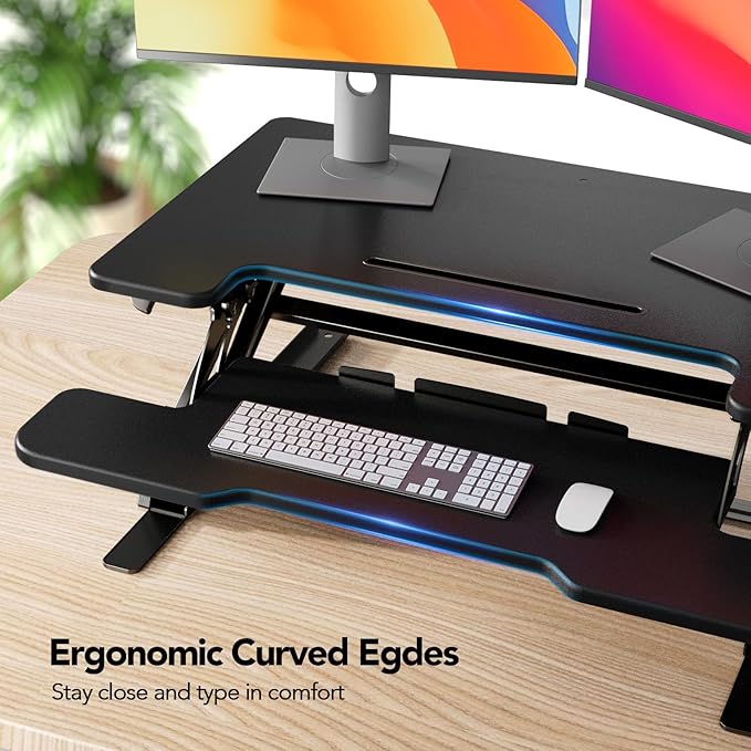 - Hassle-Free Setup: This stand up desk is almost ready to use right out of the box. Simply unpack, place it on your desk, install the keyboard tray, and start using. This riser is a great gift for yourself or anyone working from home who needs a more comfortable, flexible workspace.