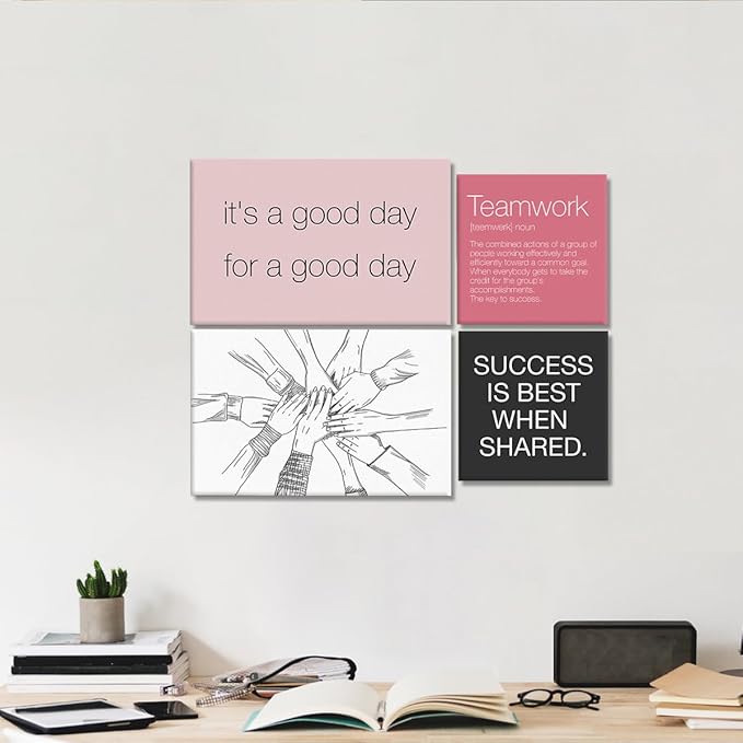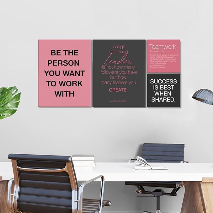 YEOION Inspirational Office Wall Art for Women,Motivational Teamwork Wall Decor for Office,Pink and Black Postive Quote Workplace Canvas Wall Art for Set of 6