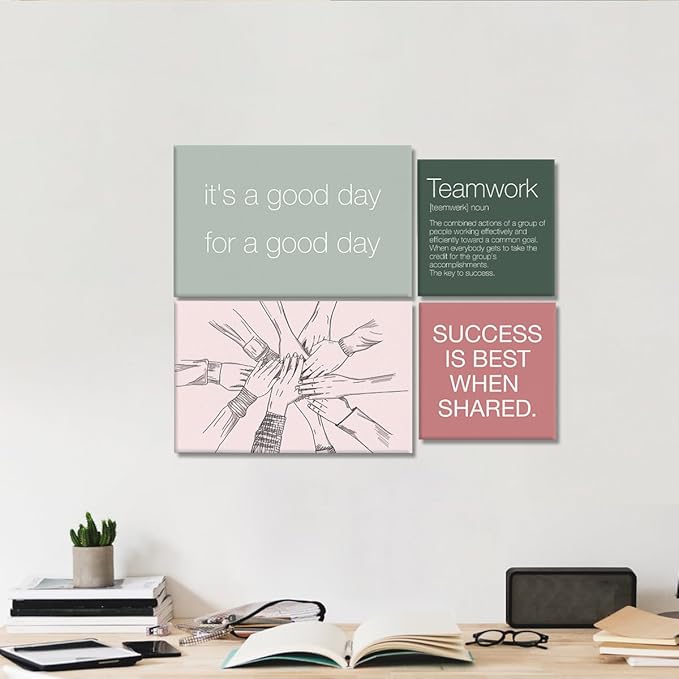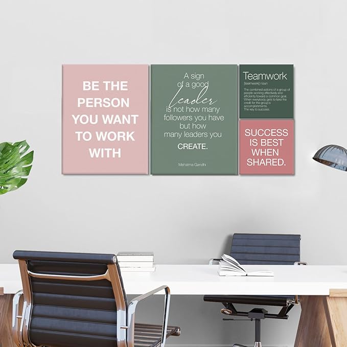 YEOION Inspirational Office Wall Art for Women,Motivational Teamwork Wall Decor for Office,Light Pink and Green Postive Quote Workplace Canvas Wall Art for Set of 6