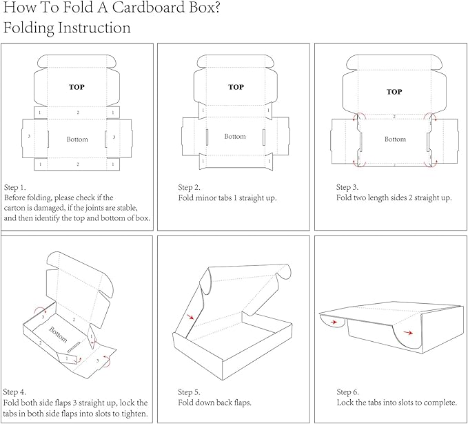 - 【Easy to Assemble】These shipping boxes are simple and quick to assemble without glue, staples, or tape. Please refer to the guidance in the images.