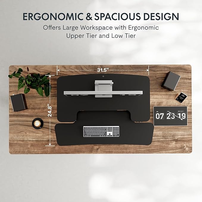 - True Ergonomic Relief – Say goodbye to back, neck, and wrist pain! This desk riser for standing promotes healthy posture with smooth, controlled transitions between sitting and standing, reducing fatigue and keeping you comfortable for hours.