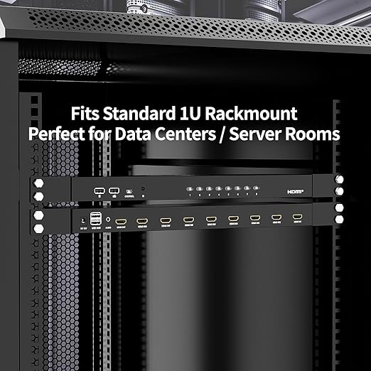 - 【Packing List】The package includes everything you need for seamless setup: 1×8 Port HDMI KVM Switch unit; 8×HDMI KVM Cables;1×Desktop controller; 1×DC12V Power Supply; 1×User Manual; 2×Mounting ears; 1×Floor mat.