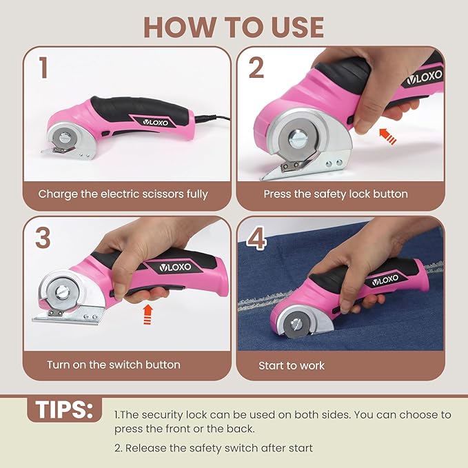 - Efficient and Powerful Electric Scissors: VLOXO cordless electric scissors with built-in battery, which can last 40 minutes. When you use it, you will feel its wind-like cutting speed. At the same time, plug-in charging greatly improves the charging speed. It can cut canvas, leather, cardboard boxes, and other slightly hard materials. TIP: Not for fabric and precision cutting.