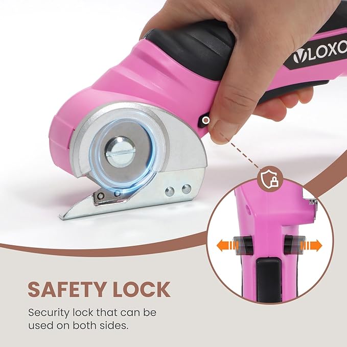 VLOXO Cardboard Cutter, Cordless Electric Scissors for Leather with Safety Lock, Box Cutter Electric Multi-Cutting Tools Rechargeable Powerful Scissors for Canvas Leather Plastic with Storage Box Pink