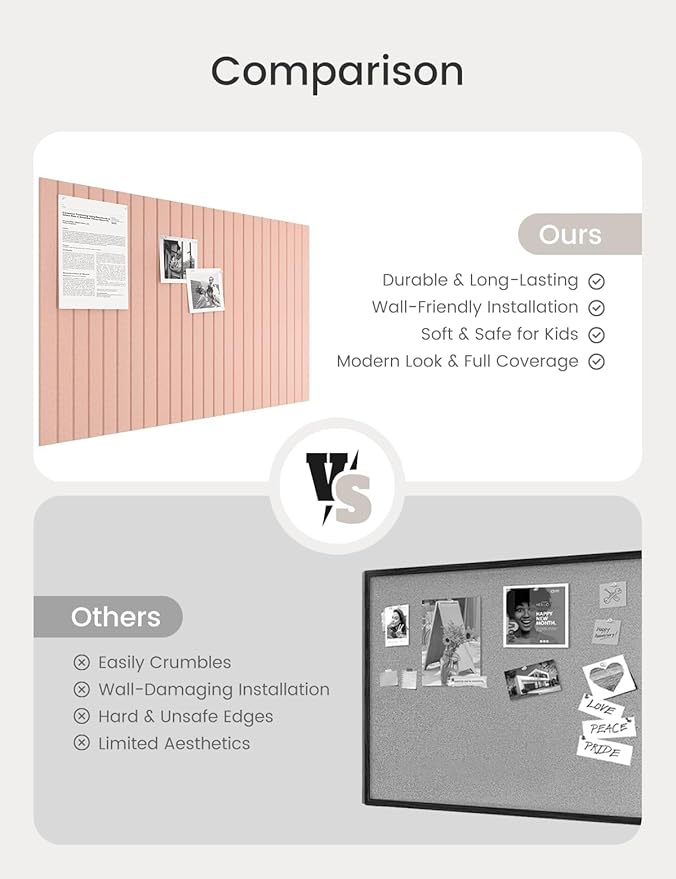 - 【Felt Bulletin Board – 6 Tiles Included】 Includes 6 felt cork boards (each 11.8" x 11.8") with 30 Pushpins that can be freely arranged into a large display board. Perfect for showcasing your schedules, ideas, and creations in home or office settings.