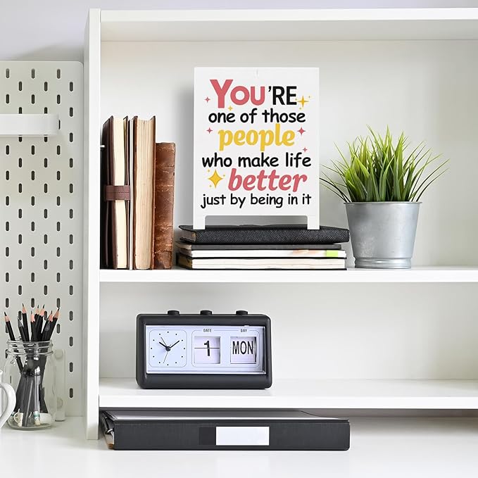 - Positive Office Decor: Enhance your workspace with a touch of positivity. Our desk decor plaque features the uplifting message: "You’re One Of Those People Who Make Life Better Just By Being In It," perfect for creating a supportive and encouraging environment.