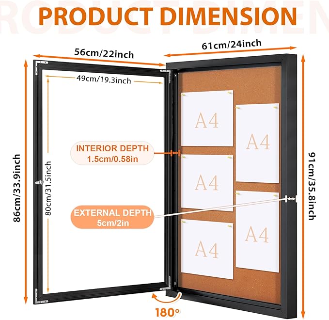 - π§ Outdoor Use β Outdoor display board with aluminum frame and full-length hinges for added durability. Designed for secure, reliable outdoor wall mounting