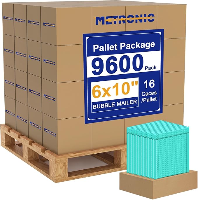 - 【Wholesale Made Easy】METRONIC supplies bubble mailers 6x10 Inch in full pallet packaging: 16 cases/pallet, 600 packs/case (Total 9600 packs). Bubble mailers 6x9" 9600PC not only eliminates the hassle of frequent restocking but also save on business supplies in bulk.