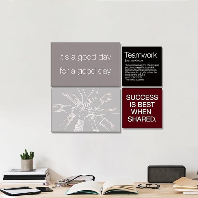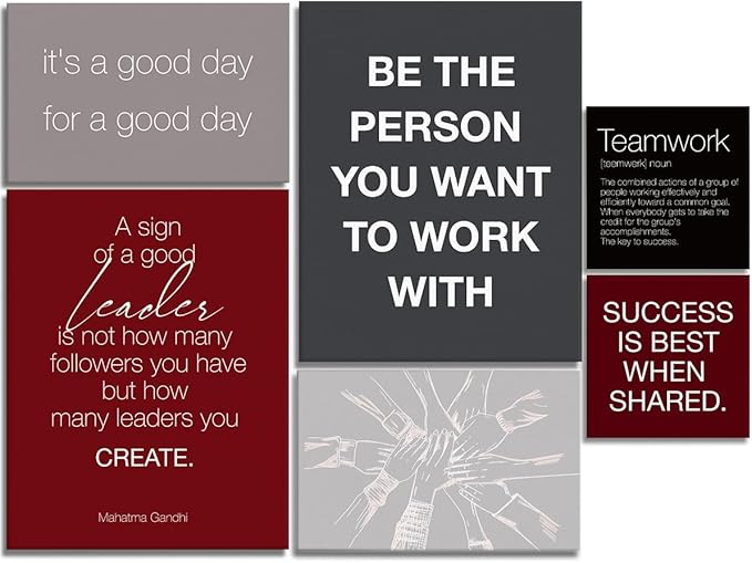 YEOION Red Grey Black Motivational Teamwork Office Wall Decor,Inspirational Team Work Wall Art Canvas Frame Artwork for Office Workplace Breakroom Wall Decor Set of 6