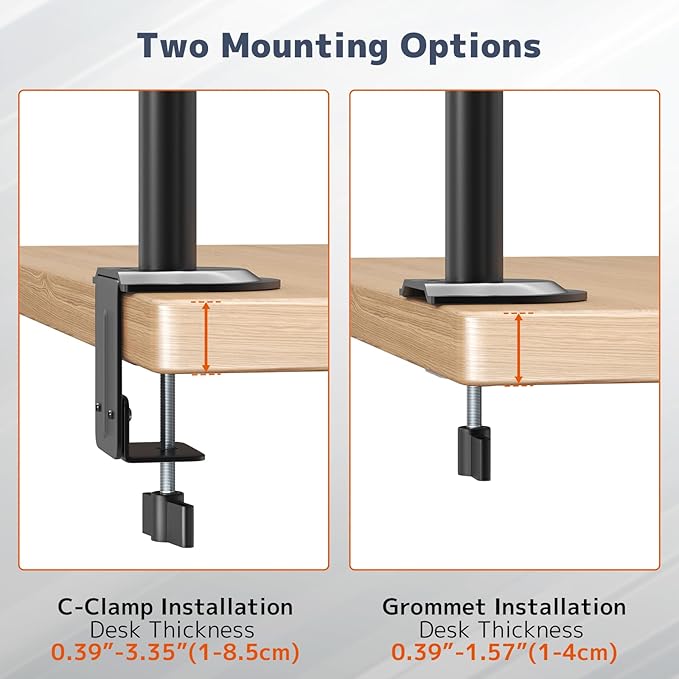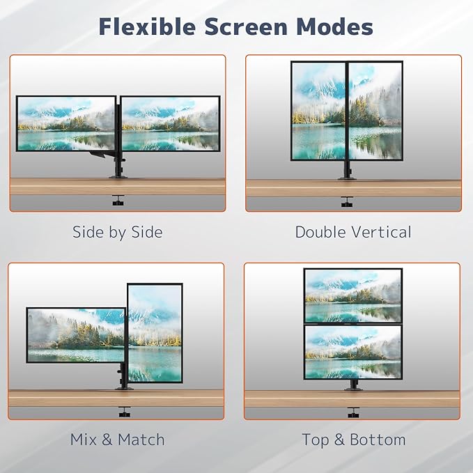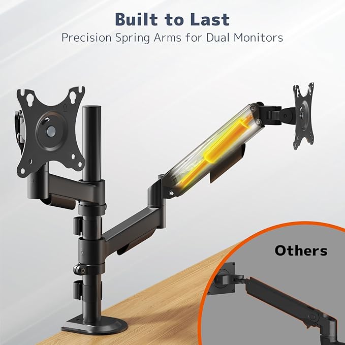 - 【Enhanced Compatibility & Stable Support】 Supports two 17"–32" monitors weighing 4.4–19.8 lbs each. Compatible with VESA 75x75mm or 100x100mm. Mechanical spring arms provide steady and reliable positioning for most LED, LCD, or flat monitors