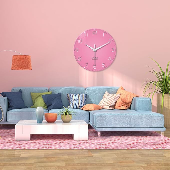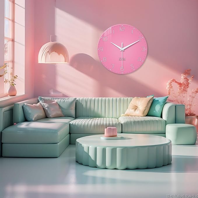 - 1.[Size] - The pink wall clock is 20 inches x 20 inches,HD glass wall clock,frameless analog wall clock,round wall clock for bedroom,decorative wall clocks for living room,extra large wall clock for bathroom,quiet wall clock for office,minimalist wall clock for kitchen.