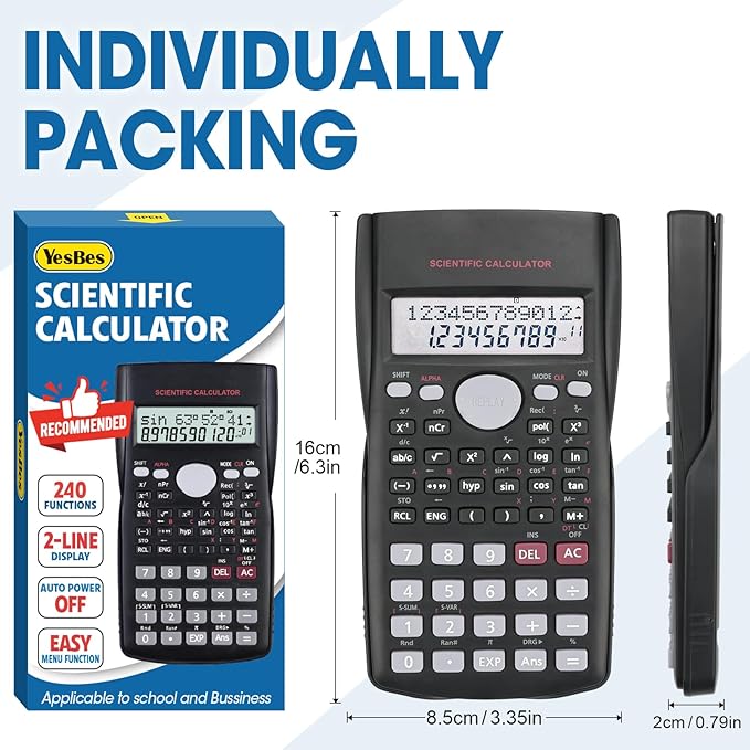 - Advanced Scientific Functions: This scientific calculator offers 240 functions, which can easily handle 1 and 2 variable statistical calculations, including percentages, trigonometry, 24 parentheses levels, summation, regressions, fractions, regressions, permutations and combinatorics, etc, to provide you with comprehensive and diverse calculation functions scientific