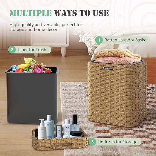 - 【Durable Material & Structure】 Made from high-end thick PE rattan and all-Iron structure, this waste basket is weather-resistant and last for years.