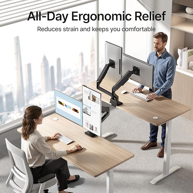 - Fully Adjustable Dual Monitor Arm: This vesa monitor mount provides precise, easy adjustments to customize your viewing experience: tilts from -45°to +90°, swivels±90°, rotates ±180°, and offers height adjustment ranging from 8.8 to 20.4 inches. Ergonomically designed, these adjustment options let you place your screen exactly where it’s needed—whether you’re raising it to ease neck strain, angling it for more comfortable reading, or repositioning it to reduce eye fatigue.