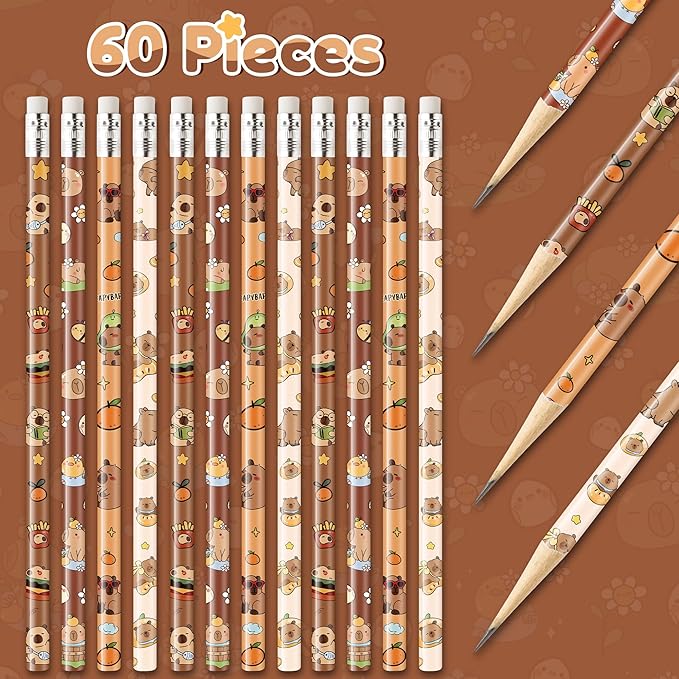 - Multiple Usage: These cute capybara themed pencils are suitable for lots of occasions, such as back to school classroom rewards, school supplies, office supplies, school event giveaway, party bag stuffers, birthday party favors, Christmas gift and so on.