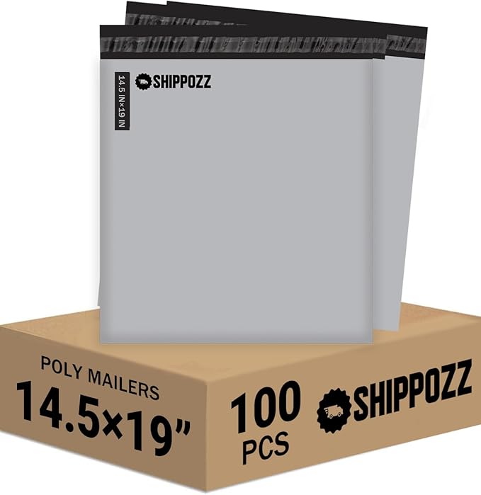 14.5 x 19 100pcs Shippozz Poly Mailers – Durable Shipping Envelopes with Strong Adhesive Seal, Waterproof and Tear-Resistant Design – Ideal for Clothing, Books, and Accessories