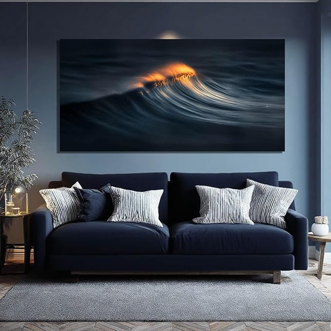 - large wall art : This black hallway decor and gold canvas wall art measures 24" x 48" and can be hung over a sofa, bed, or console table for a striking, yet subtle, effect.