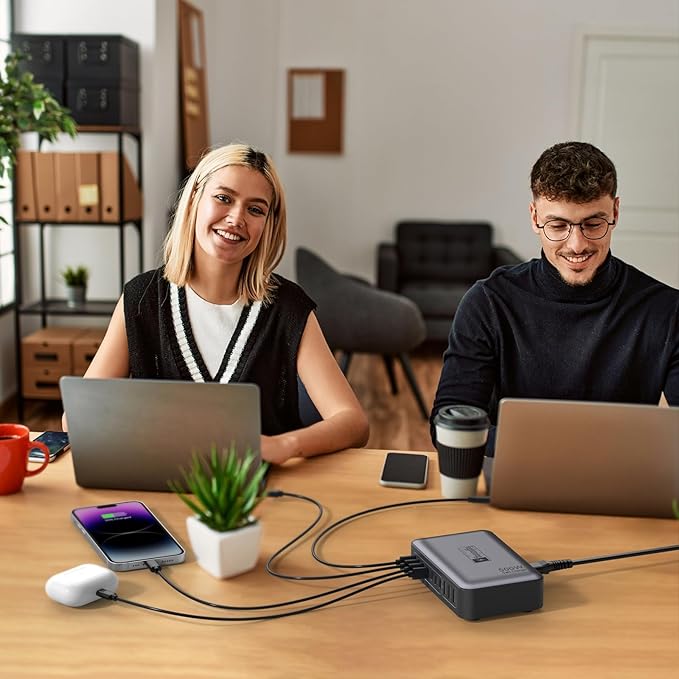 - Universal multi chargers for all devices 450W total: the charger brick including 140W, 30W, 20W 18W, meets all your fast charging needs from laptops to cellphones.