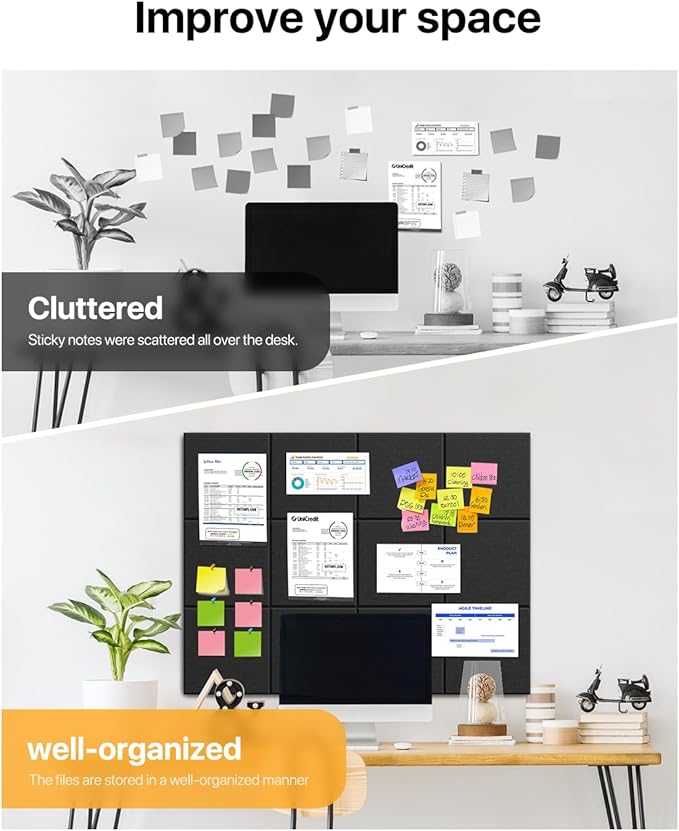- 【Wide Range of Uses】Ideal for posting notices, creating a picture board for photos, displaying notes, or organizing reminders, these versatile tiles function as a practical cork bulletin board in various settings. Perfect for offices, conference rooms, bedrooms, and schools, they help you stay organized while adding a modern touch to any decorative cork boards display.