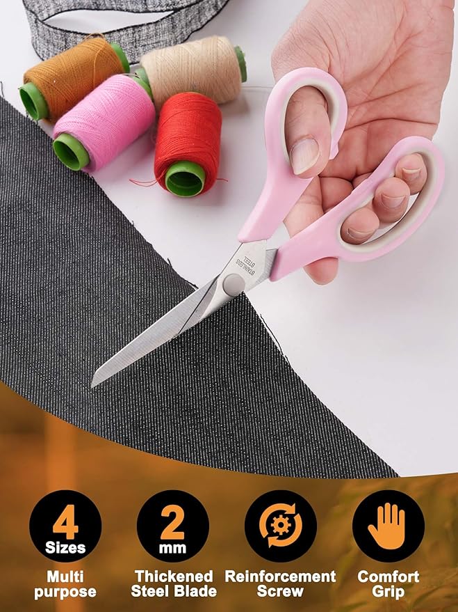 Craft Scissors Set of 4, Sharp Stainless Stee Blades, Comfort Grip, Scissors All purpose for Office School Home Fabric Sewing DIY Art Craft Cutting, 8.5''/7.5''/6.7''/5.5'', Pink