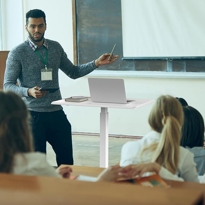 NEWBULIG Rolling Standing Desk Adjustable Height White, Mobile Standing Desks with Wheels, Portable Table Medical Rolling Computer Cart, Podium Stand with Metal Frame for Teacher Classroom Laptop