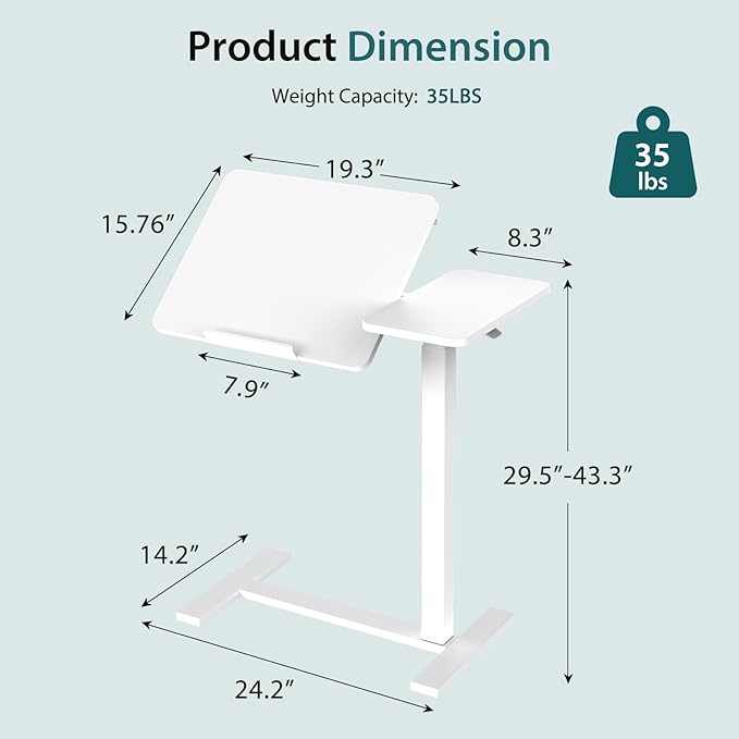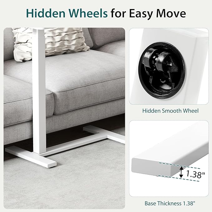 - Moves Effortlessly, Fits Anywhere: Designed with smooth 360° swivel casters, this desk on wheels glides quietly over tile, wood, or carpet without leaving marks. The slim, low-profile base slides easily under beds, sofas, or chairs, making it a great overbed bedside table for compact homes, dorms, and small offices.